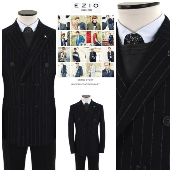 쵸크핀 스트라이프 네이비 더블 자켓.
