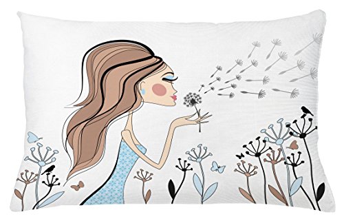 (Ambesonne)/Bedding Bath/Bedding/DIRECT FROM USA/Girls Throw Pillow Cushion Cover by Ambesonne, Fashion Woman with Dandelion Flower Spring Wind ...