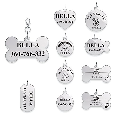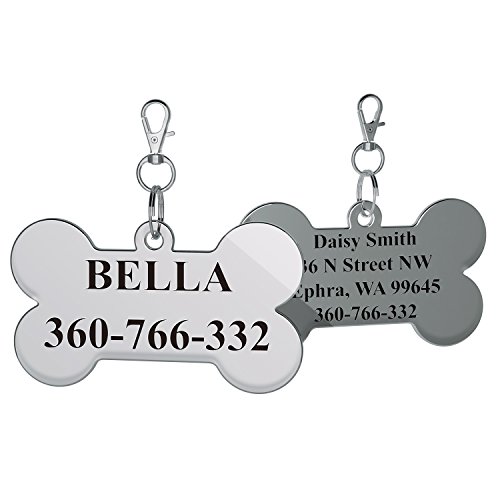 (PETPA)/Pet Supplies/Collars, Harnesses Leashes/DIRECT FROM USA/Stainless Steel Pet ID Tags Dog Tags Personalized Front and Back Engraving … (Bone)