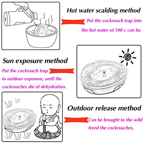 4. The cockroach trap can't put in the same place for a long time, 2,3 days or so can't catch, Please change the bait or change another place. Chocolate, oatmeal and cookie are what roaches can not resist, use them as bait may help you get better result.