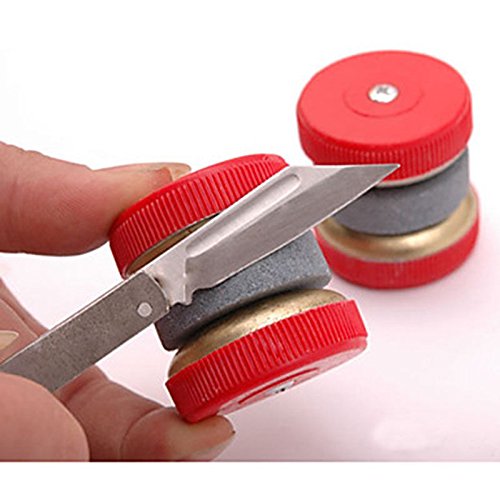 -. Feature : Knife sharpener has two plastic wheels / Super easy and intuitive operation / Color:green+red / Size: Height:about 4.5cm, diameter : about 3.5cm / Quantity: 2PCS(green+red)