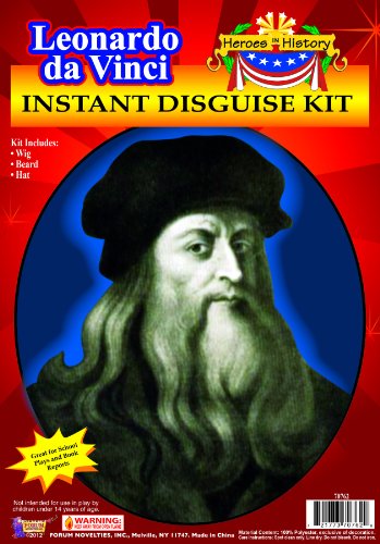 -. Feature : Leonardo da Vinci instant disguise kit includes wig, beard, and hat / Part of the heroes in history collection / Hand wash in cold water with mild detergent and line dry / Ideal for historical reenactments, themed costume parties, Halloween celebrations, and more / Made by forum novelties, a leader in costumes and novelty products for more than 30 years