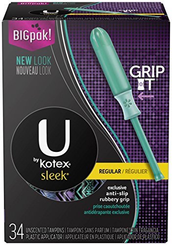 ReleaseDate : 2016-06-09 Studio : Kimberly-Clark Corp. Publisher : Kimberly-Clark Corp. Binding : Health and Beauty Product Description U by Kotex Sleek Regular Tampons offer outstanding period protection in slim design. Sleek Regular tampons have a full-size applicator with PerfectTouch Grip for easy insertion and just-right placement. U by Kotex Sleek Regular tampons have 3 fearless colors to help you escape boring period protection. 0