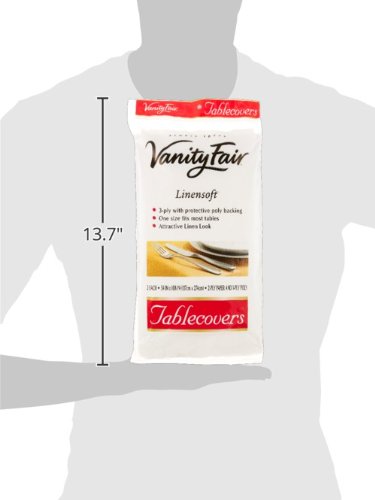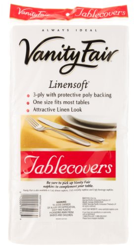 -. Feature : 3-ply with Protective Poly Backing / One size fits most tables / Attractive linen look, Linesoft / 2 tablecovers / White, 54 in x 108 in