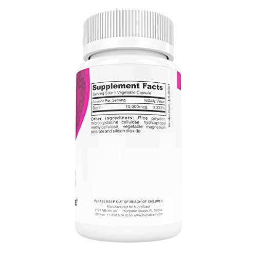 -. Title : NutraBlast Biotin 10000Mcg Maximum Strength - Non-GMO - Supports Hair Growth, Skin, Eyes, and Nails Health - Made in USA (90 Veggie Capsules)