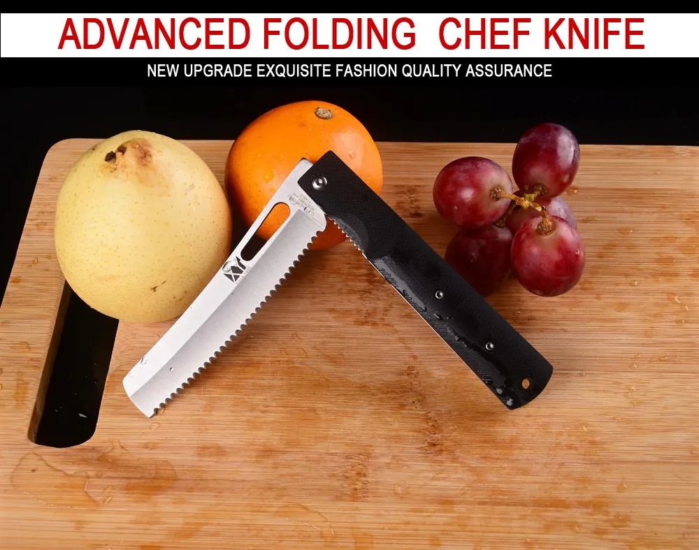 | [해외] 내구성 440A 스테인레스 스틸 부엌 칼 접는 요리사 빵 캠핑 나이프 XYJ 브랜드 G10 야외 칼 요리 도구 |