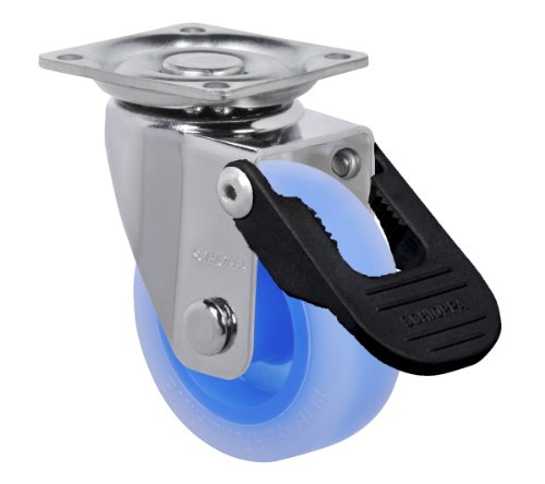 Schioppa, GLAP 210 Citrus Blue FPI, 2" (50 mm) Swivel, Brake, Non-Marking Polyethylene Wheel, 90 lbs, Plate: 1-21/32 x 1-21/32" (BH 1-1/4 x 1-1/4")