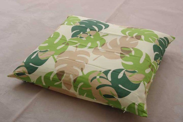 綿100%の座布団カバーです。カジュアルなモンステラ柄で洋室でもご使用いただけます。汚れが気になる際は洗濯機でも洗うことができるためお手入れが簡単でいつでも清潔にご使用いただけます。