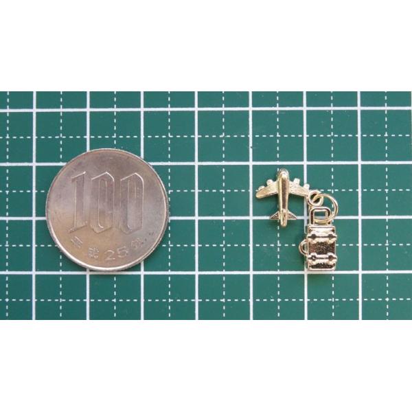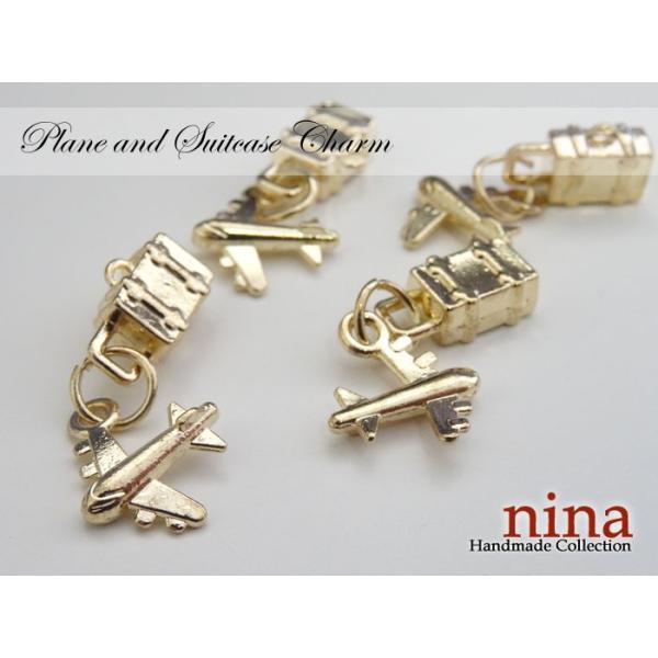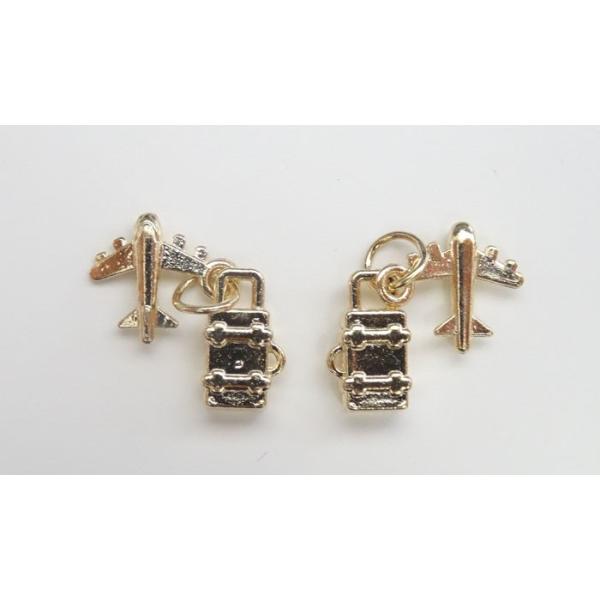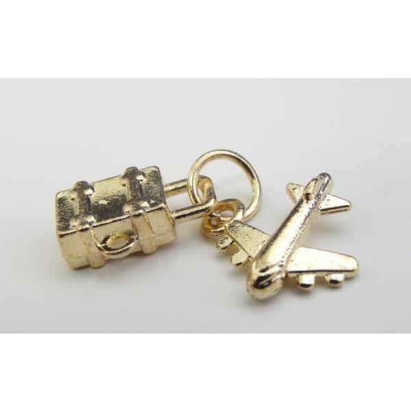 小さな飛行機とスーツケースがペアになったチャームです。