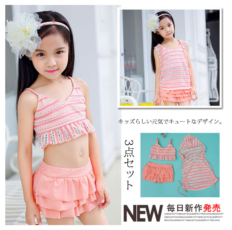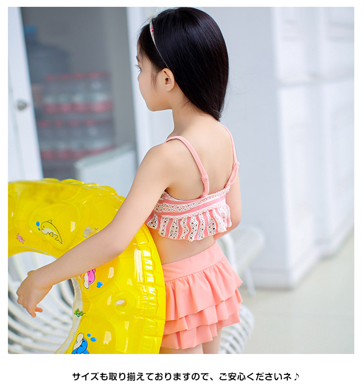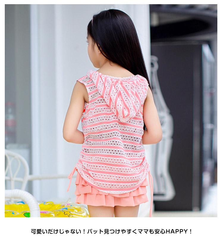 | キッズらしい元気でキュートなデザイン。大人顔のまけない女の子水着3点セットです。プルオーバートップス付きでお肌を守る◎可愛いだけじゃない!パット見つけやすくママも安心HAPPY!サイズも取り揃えておりますので、ご安心くださいネ♪ | |