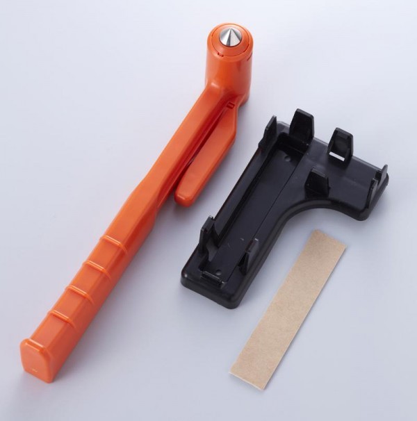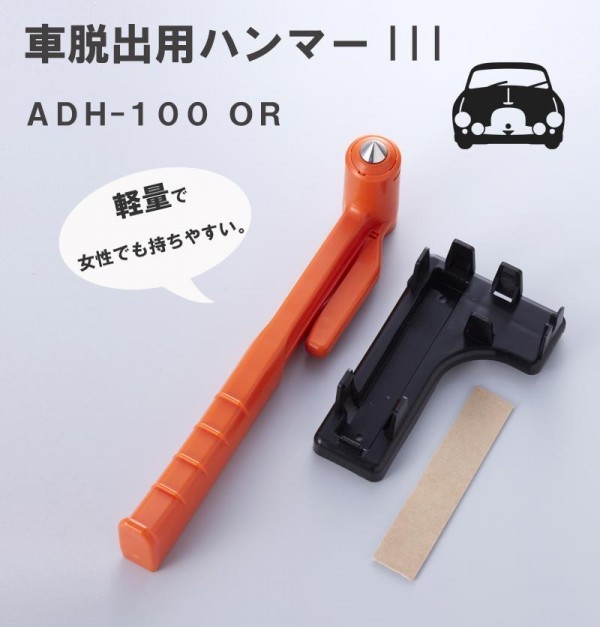 全パーツこだわりの日本製です。軽量で持ちやすい形状なので女性にも使いやすくなっています。ヘッド部に硬質合金鋼使用(ロックウェル硬さHRC58相当)の国産ハンマーです。カッターが付いているのでシートベルトを切断できます。 |