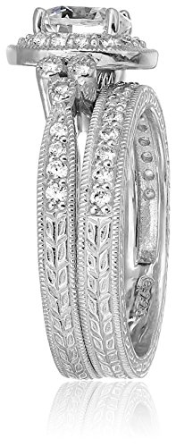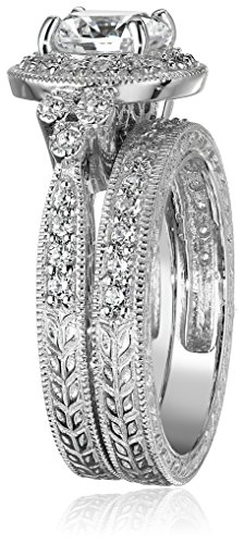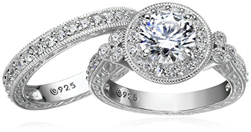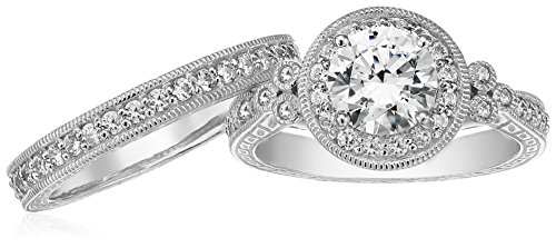 -. Binding : Jewelry -. Brand : Amazon Collection -. Department : womens -. Feature : Two-piece platinum-plated ring set with Swarovski zirconia on half-eternity band and flanking large center stone / Cubic Zirconia is an affordable diamond alternative that reveals brilliant shine and a meticulous cut. / Imported -. Label : Elite Group International NY Inc.- ACC -. Manufacturer : Elite Group International NY Inc.- ACC -. Model : R2973301_120_060-Parent -. MPN : R2973301_120_060-Parent -. PartNumber : R2973301_120_060-Parent -. ProductGroup : Jewelry -. ProductTypeName : FINERING -. Publisher : Elite Group International NY Inc.- ACC -. Studio : Elite Group International NY Inc.- ACC -. Title : Platinum-Plated Sterling Silver Swarovski Zirconia Round Antique Ring Set