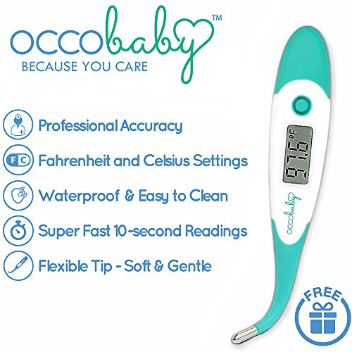OCCObaby Clinical Forehead Baby Thermometer - 2017 Edition with Flexible Tip Waterproof Digital Thermometer for Infants & Toddlers | Instant Read...