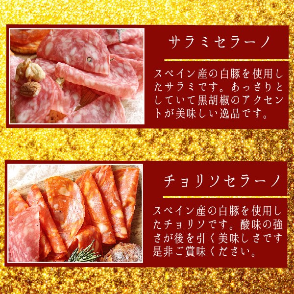 最高級イベリコ生ハムのハモンイベリコ24ヶ月熟成とイベリコのサラミとチョリソ、さらにスペインを代表するセラーノサラミとチョリソを贅沢に詰め合わせた御歳暮セットをご用意しました!※一部地域を除く当店一番人気 おつまみ盛り合わせ+最高級イベリコ生ハム「ハモンイベリコ」+イベリコサラミ+イベリコチョリソ+セラーノサラミ+セラーノチョリソさらに同じ商品を3つ以上同時購入でチョリソのプレゼントも!手土産や特別な日にプレゼントとしてもお勧めです。おすすめ・ポッキリおつまみ!ポイント消化としても! お取り寄せ ランキング 通販 人気 送料無料 増量スペインから直輸入だから出来たこの価格どこにも真似できません!内容量:240g保存方法:常温賞味期限:別途記載原産国:スペイン送料無料:宅急便