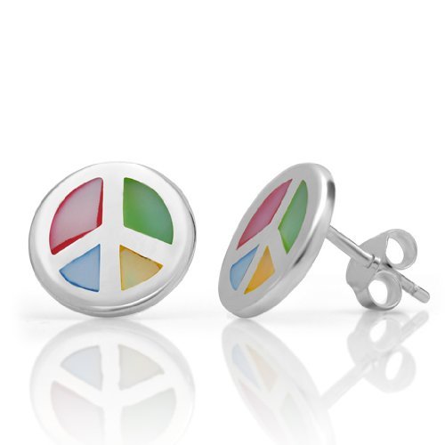 -. Title : 925 Sterling Silver Multi-Colored Mother of Pearl Peace Sign 13 mm Post Stud Earrings - Nickel Free