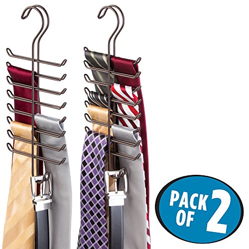 mDesign Closet Organizer for Ties, Belts, Handbags, Fashion Jewelry, (Set of 2) - Bronze