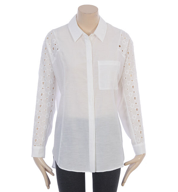 SISLEY, 깔끔한 솔리드톤에 펀칭 소매로 개성을 살리고 히든버튼 여밈으로 깔끔함을 더한 세미포멀 포켓 블라우스입니다