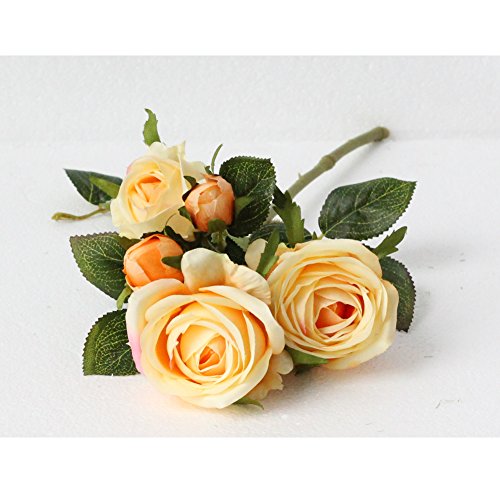 3 Roses Flower 2 Flower buds Fake Silk Flower Artificial Flower Wedding Birthday Party Office Hotel Living Room Table Garden Floral Decor