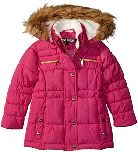 Attached hood is lined and faux fur trimmed