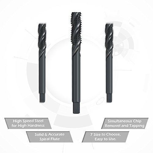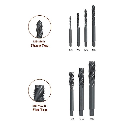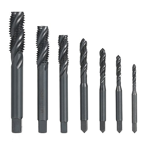 KKmoon 7PCS M3-M12 HSS Nitriding Coated Metric Spiral Flute Taps Machine & Manual Screw Thread Tap Set for Metal Wood Plastic Tapping