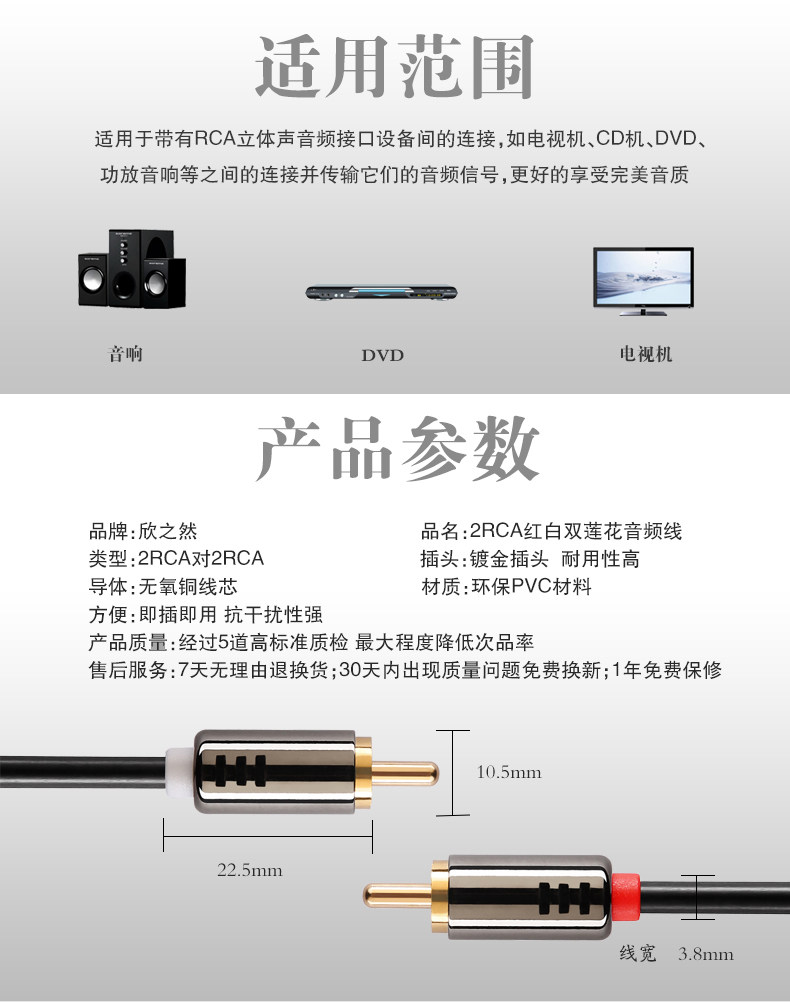 欣之然 y635 发烧2RCA红白双莲花头音频信号线DVD电视接音响功放