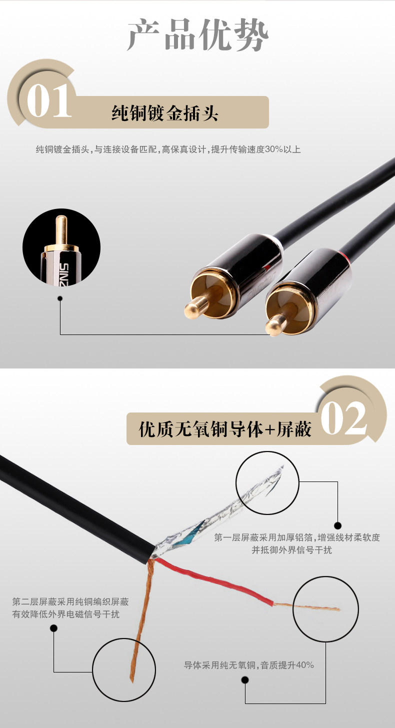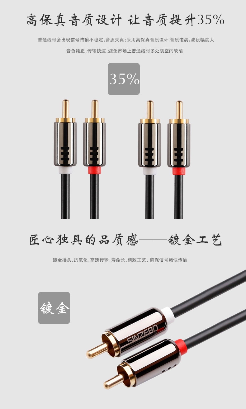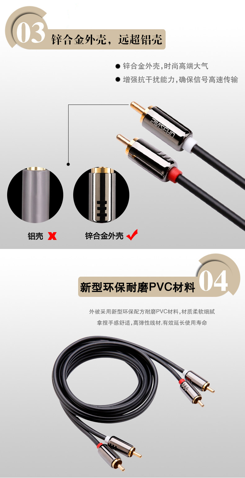 锌合金壳 无氧铜芯 镀金插头 双层屏蔽 畅快传输
