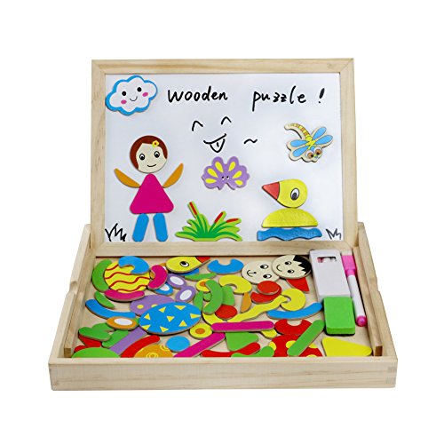 Wooden Educational Toys, Magnetic Puzzle Board, Fajiabao Jigsaw Puzzles Dry Erase Double Side M...