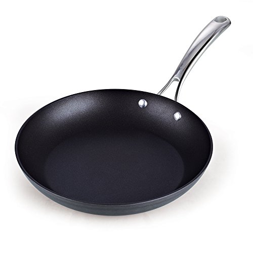 The Cooks Standard 11-inch nonstick hard anodized fry saute pan, Black has an anodized surface that is durable and harder than stainless steel. The heavy gauge aluminum core distributes heat evenly and prevents hot spots. Nonstick coating delivers exceptional performance, makes cleaning easy, and allows for healthier cooking. Lead, cadmium, and PFOA free. Stainless steel handle stays cool and is riveted for strength. Works on gas, electric, glass, ceramic, etc. Not induction compatible. Oven safe to 450F. Hand wash recommended.Feature