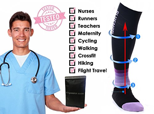 Compression Socks, Compression Sock for Running, Pregnancy, Flight, Travel, Nursing, Boost Stamina, Speed Up Recovery, Better Blood Circulation …