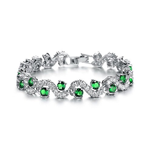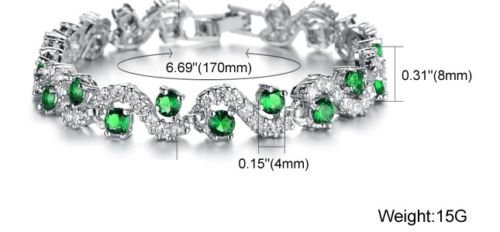 Crystalline 18K 화이트 골드 도금 에메랄드 그린 스와로브스키 크리스탈 팔찌 팔찌 호화