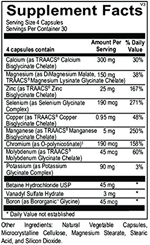 Reacted Multimin contains all the vital minerals and trace minerals in a chelated form necessary for a healthy diet.