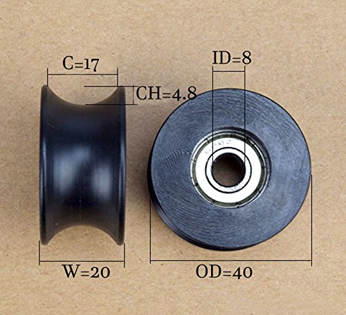 Letool 4pcs 608zz coated pa66 nylon 1.57inches bearing roller wheel 8x40x20mm U type groove pulley