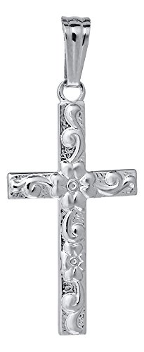 -. Binding : Jewelry -. Brand : KiddieKraft -. Department : girls -. Feature : Sterling Silver Floral Cross Pendant 0.39 wide x 0.76 tall / For the dainty flower in your life, show your faith with this floral cross. This cross pendant comes with a 15" sterling silver cable chain. / The perfect gift for your little one. Gift box is included. / The Marathon Company unconditionally guarantees the workmanship and materials of its products. If you are not fully satisfied, please return the product for repair or replacement. / Proudly Manufactured in the USA -. Label : Marathon -. Manufacturer : Marathon -. Model : P585 -. MPN : P585 -. PartNumber : P585 -. ProductGroup : Jewelry -. ProductTypeName : FASHIONNECKLACEBRACELETANKLET -. Publisher : Marathon -. Studio : Marathon -. Title : Sterling Silver Floral Cross Pendant with Cable Chain, 15"