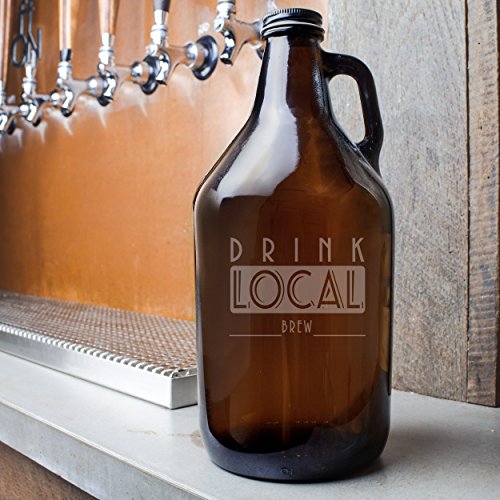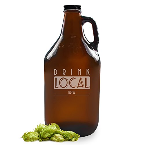 - Growler engraved with "Drink Local Brew" design