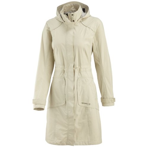 2.5 layer Merrell Opti-Shell waterproof, breathable fabric keeps you dry and comfortable. Fabric: 22% polyester / 78% nylon. Printed lining adds feminine touch. Fully taped seams. Two-way front zipper with storm flap. Dual patched on zip-secure hand pockets with stitching details. Piping and stitching details add classy touch. Hanging hood with hook and loop and interior adjustability. Internal drawcord waist. Adjustable cuff with snap closure.Feature