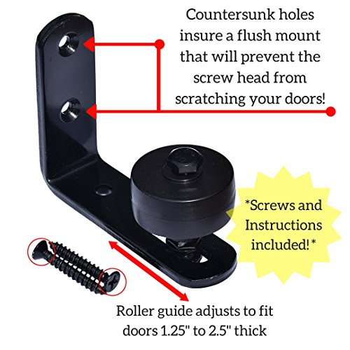 ✅ • EASY INSTALLATION: Install your roller in a flash! Our roller kit comes complete with easy-to-use instructions and screws needed to mount your roller to any wall! Save your floors from unwanted damage that traditional barn door guides will cause!