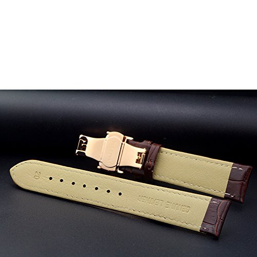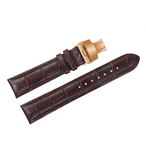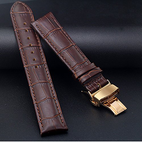 -. Title : ViuiDueTure (12mm-22mm) Brown Luxury Business Classic Calfskin Leather Strap Replacement Watch Band Rose gold Deployment Buckle