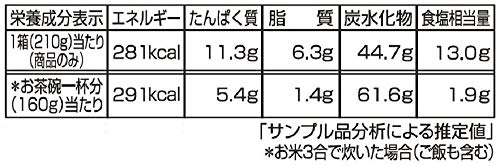 1箱分(210g):エネルギー281kcal、たんぱく質11.3g、脂質6.3g、炭水化物44.7g、食塩相当量13.0g