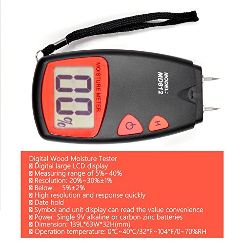 Moisture Meter, Moisture Testers, Sokos LCD Display Digital Wood Moisture Meter for Wood | Sheetrock| Carpets(Orange)