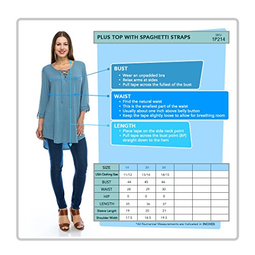 We use premium quality fabrics and we manufacture trendy ladies plus size v-neck tops with with spaghetti straps in our factory located in Los Angeles, California, USA. We have been creating a movement of moving manufacturing jobs back to the USA. We are committed to producing higher quality womens apparel.