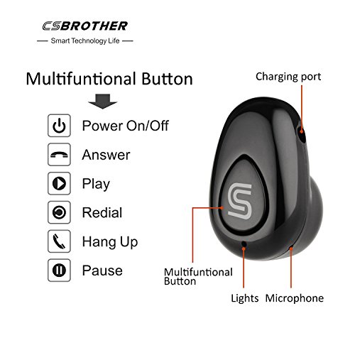 Blutooth Headphones CSBROTHER Smallest Wireless Invisible Bluetooth Earphone Earbud Earpiece with Microphone Support Hands-free Calling For iPhone Samsung Sony LG and Most Smartphone. (Black)