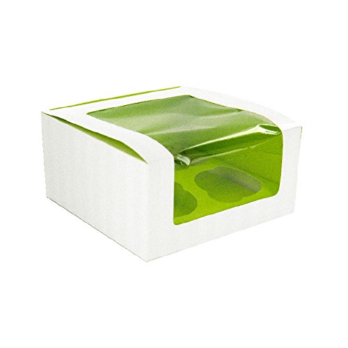 PacknWood Cupcake Box with Window, Holds 4 Cupcakes, 6.7 x 6.7 x 3.3", Green (Case of 100)