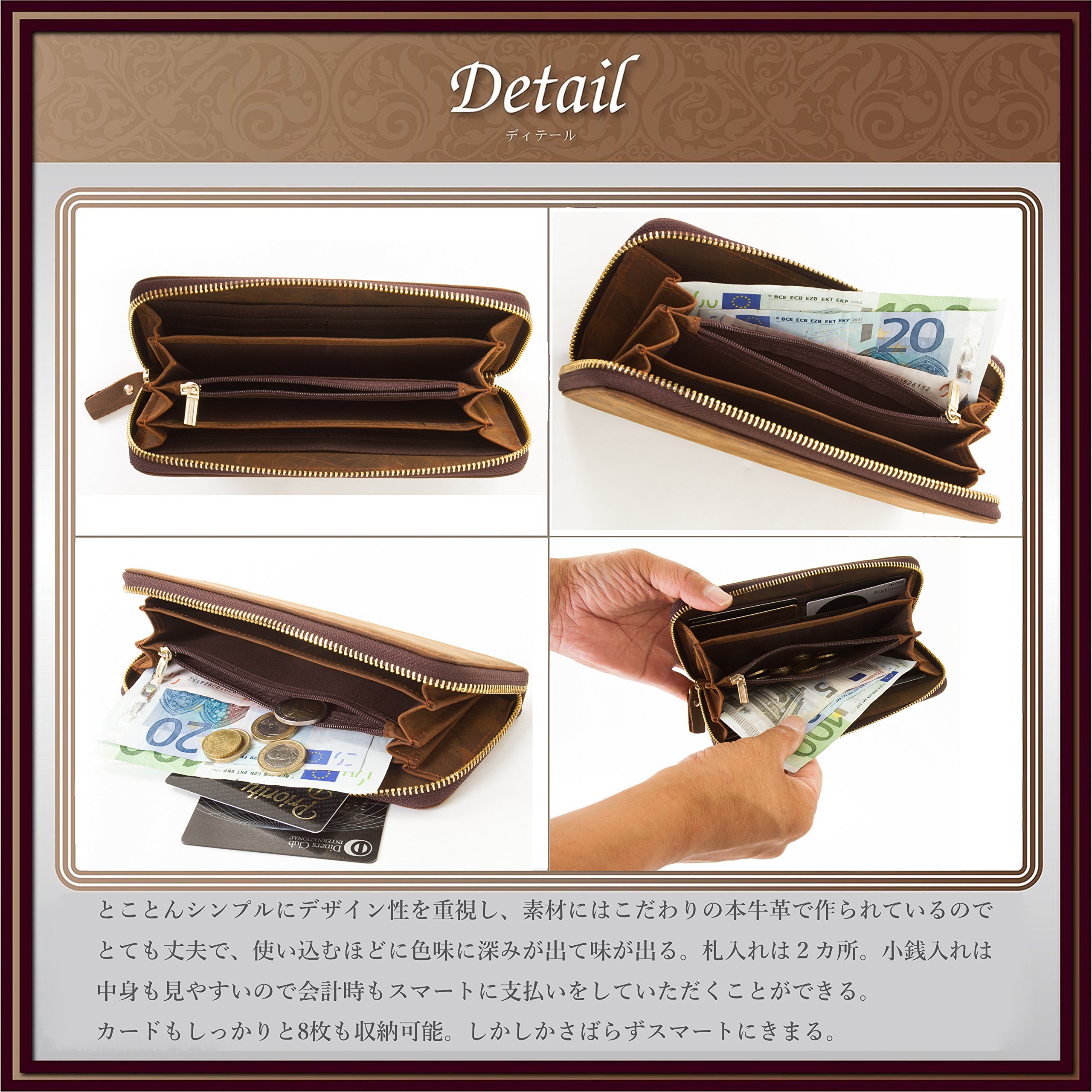 Leather long wallet with presence that makes you the hero of life.