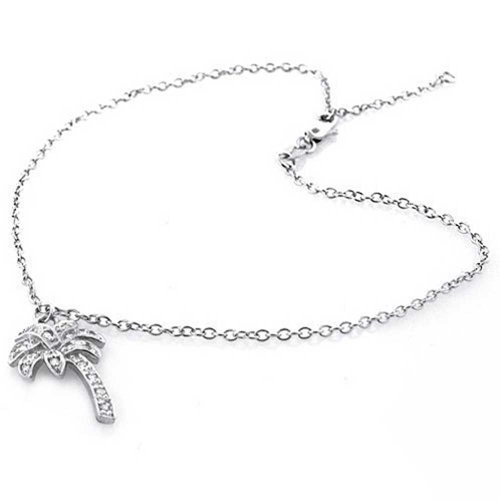 -. Title : Bling Jewelry Pave CZ Palm Tree Charm Anklet Bracelet 925 Sterling Silver
