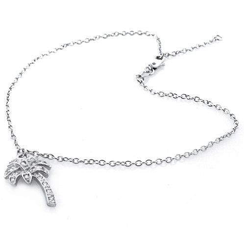 -. Feature : Palm tree ankle bracelet / cubic zirconia / chain fits up to 10in ankle / .925 Sterling Silver / Weight: 2.69 Grams