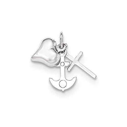 -. Feature : 14K White Gold Heart, Cross and Anchor Charm Pendant / Millimeter Measurement Comparisons / In Words to remember every 25MM equals 1-inch and 12.5MM equals 1/2-inch / Dime=17MM,Penny= 19MM,Nickel= 21MM,Quarter= 24MM / For international orders customers are responsible for all custom fees.