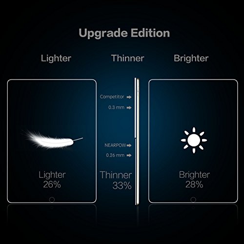 -. Binding : Electronics -. Brand : NEARPOW -. Color : Clear -. Feature : 0.26mm tempered glass screen protector designed for iPad Pro 9.7 inch ONLY, perfect cut and fit for your tablet's screen, 2.5D round edge provides more comfortable handle feeling than the right angle edge, and will never hurt your fingers / One-push super easily installation: Precise laser cut tempered glass made with polished, rounded edges, automatically attach to the screen smoothly, hassle-free and bubble-free. No residue when removed, can repeatable installation / Featuring maximum protection: 99.99% HD Clarity and Touchscreen Accuracy, Oleophobic screen coating magically resists oils and reduces annoying fingerprints, against dirt and dust. Explosion-proof 9H Hardness Scratch-resistant screen protector can effectively protect your iPad Pro from unwanted scuffs and scratches by knife, keys and some other hard substances / Lifetime no-hassle warranty provides easy lifetime protection for your tempered glass screen protector / Online video tutorials and detailed Instructions on how to correctly install your screen protector -. Label : NEARPOW -. Manufacturer : NEARPOW -. Model : NP-IPADPOR-97 -. MPN : NP-IPADPOR-97 -. PackageQuantity : 1 -. PartNumber : NP-IPADPOR-97 -. ProductGroup : PC Accessory -. ProductTypeName : COMPUTER_COMPONENT -. Publisher : NEARPOW -. Studio : NEARPOW -. Title : iPad Pro Glass Screen Protector 9.7", Nearpow Tempered Glass [2.5D Round Edge] [9H Hardness] [Crystal Clear] [Easy Bubble-Free Installation] [Scratch Resist]