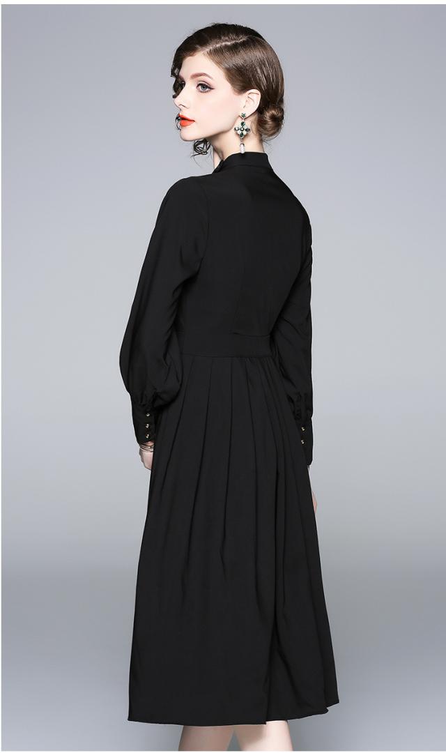 ボリュームがある袖とフィットアンドフレアの美しいシルエットのドレスです。