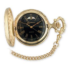 -. Title : Mt Rushmore Design on Case Black Hills Gold Men's Black Face Pocket Watch
