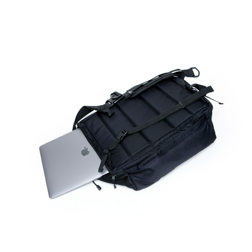 메인 수납공간과 등판 보강재 사이에 밖에서부터 지퍼로 개폐 가능한 노트북 수납공간이 있으며, 완충재로 든든하게 보호되어 있습니다. 15인치 맥북프로를 수납하고도 조금 공간이 남을 정도로 넉넉합니다 :) 등판은 제원단으로 덧대어져 있어 옷을 상하게 하지 않습니다!